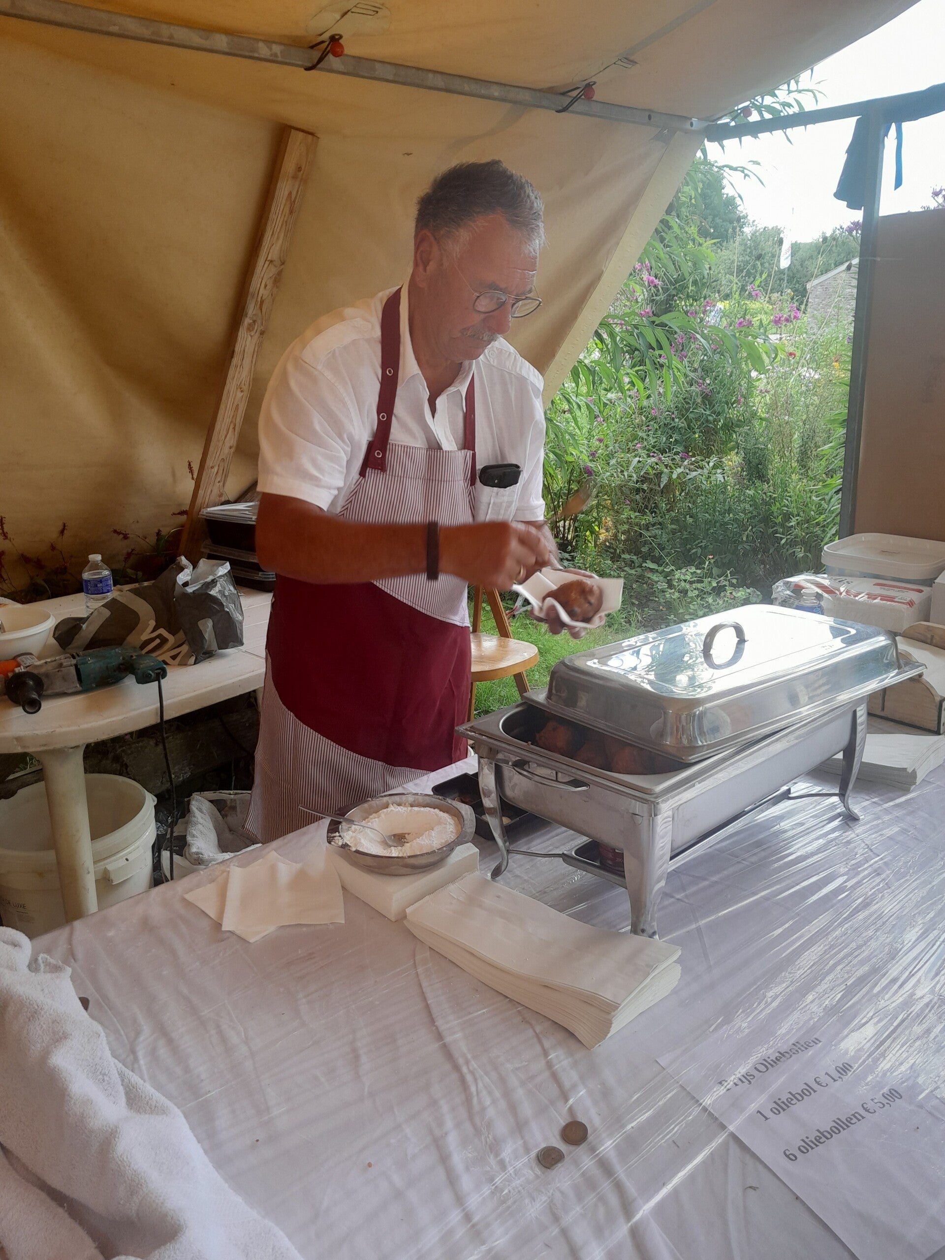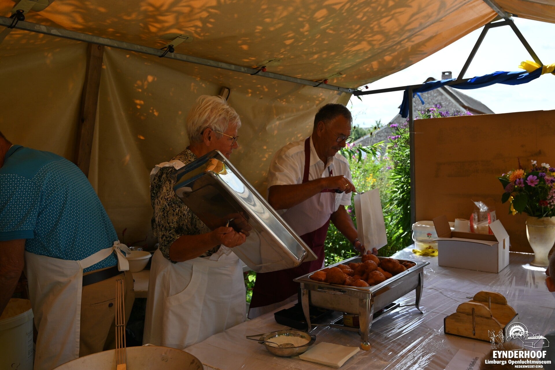 Oliebollenverkoop tijdens nostalgische kermis op Eynderhoof 2025.