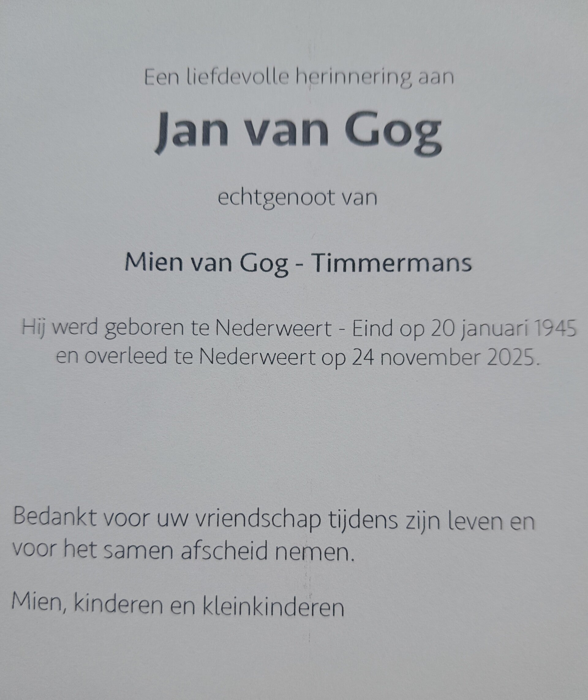 Jan van Gog 1945 - 2025